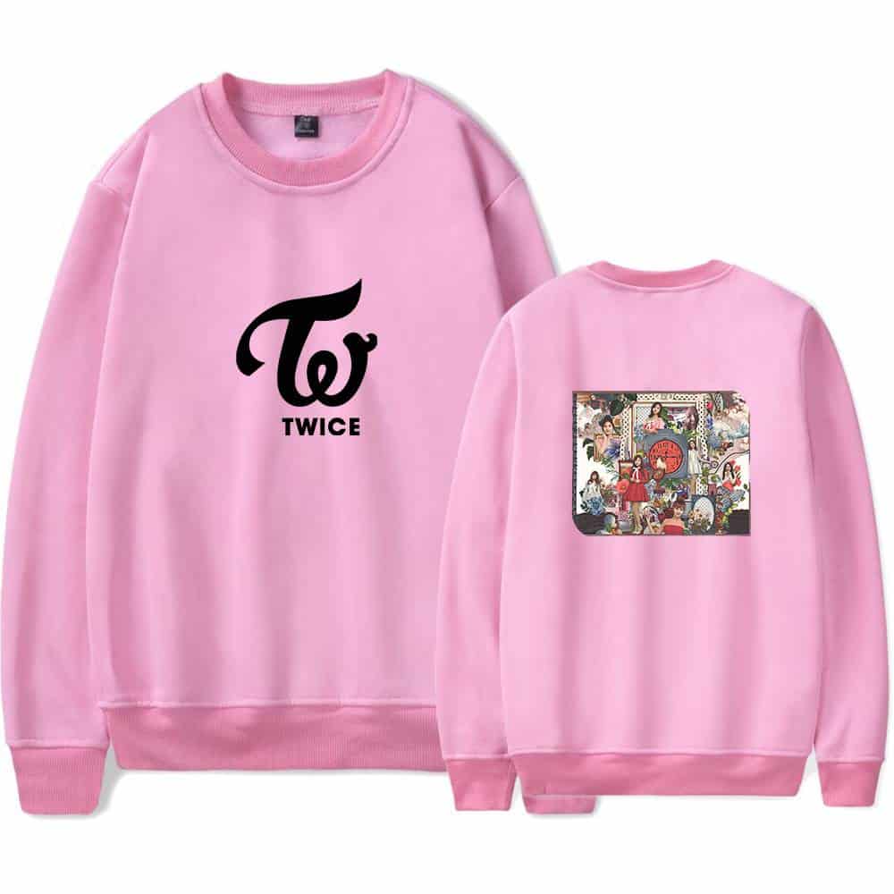 Woven sweatshirt with TWICE logo and vibrant K-pop merchandise design on back. TWICE K-pop merchandise sweatshirt featuring TWICE logo and colorful album art. Perfect for fans to showcase their love for the K-pop girl group TWICE. Comfortable and stylish apparel for concert or everyday wear. TWICE sweatshirt with logo and colorful album art design on the back, perfect for K-pop fans and merchandise collectors. Twice kpop merch sweatshirt featuring TWICE logo and colorful group artwork on the back, perfect for fans of the popular K-pop girl group. Twice kpop merch pink sweatshirt with TWICE logo and colorful album artwork on the back, perfect for fans to show their support and love for the popular girl group.