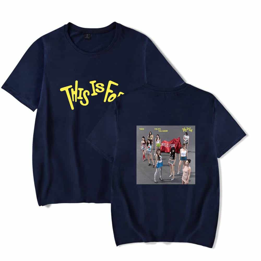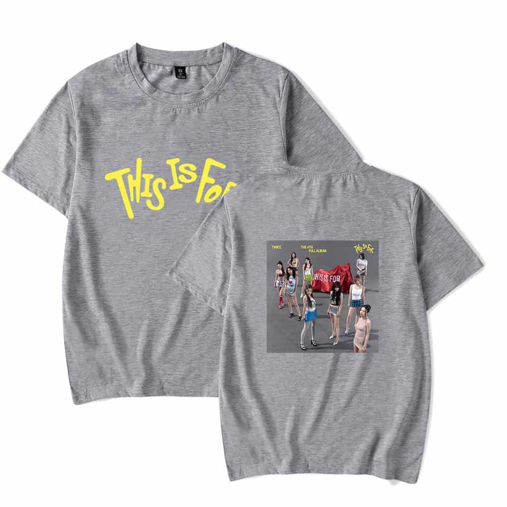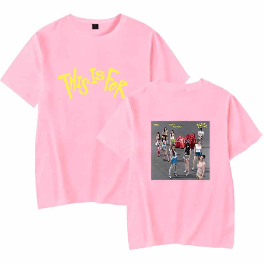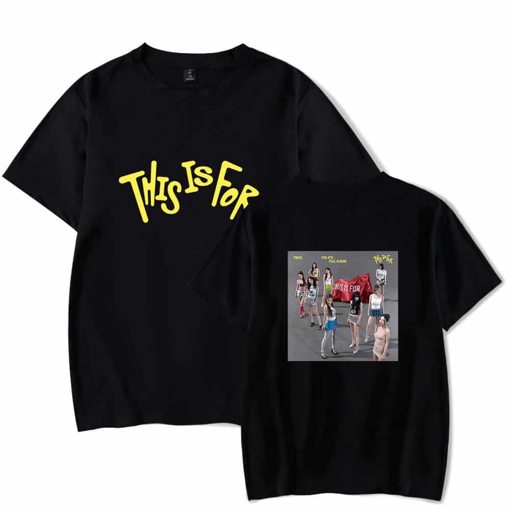 Black T-shirt with "This Is For" text and group photo print from TWICE K-pop merchandise. White t-shirt with "This Is For" yellow text and group photo of TWICE members, K-pop merch. Matching kpop merch set featuring TWICE's album cover design and bold "This Is For" text, perfect for fans wanting twin-themed K-pop merchandise. Twice kpop merch, K-pop Twice group merchandise T-shirt featuring album cover art, perfect for fans. Unique design showcasing the group's vibrant photo and logo on a comfortable grey tee. Great for concerts or everyday wear. Pink T-shirt with TWICE album artwork and "This Is For" slogan, K-pop merchandise, vibrant and fashionable, perfect for fans of TWICE, collectible K-pop merch for enthusiasts of Korean pop culture.,.