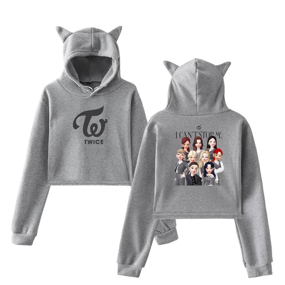 TWICE Kpop hoodie with bear ears, featuring TWICE logo and popular girl group artwork, perfect for fans and stylish everyday wear. High-quality TWICE K-pop girl group hoodie sweatshirt with cute cat ear hood, featuring TWICE logo on the front and a group illustration with the text "I CAN'T STOP ME" on the back. Perfect for fans. Twice kpop merch hoodie with cartoon girls design, cute girls graphic sweatshirt for fans, black long sleeve top for women and teens. TWICE girl group hoodies with cat ear design, featuring TWICE logo and group members print, perfect for K-pop fans and merchandise collectors. TWICE K-pop merchandise hoodie with cute cat ears, featuring the TWICE logo on the front and a group illustration with the text "I CAN'T STOP ME" on the back. Perfect for fans.